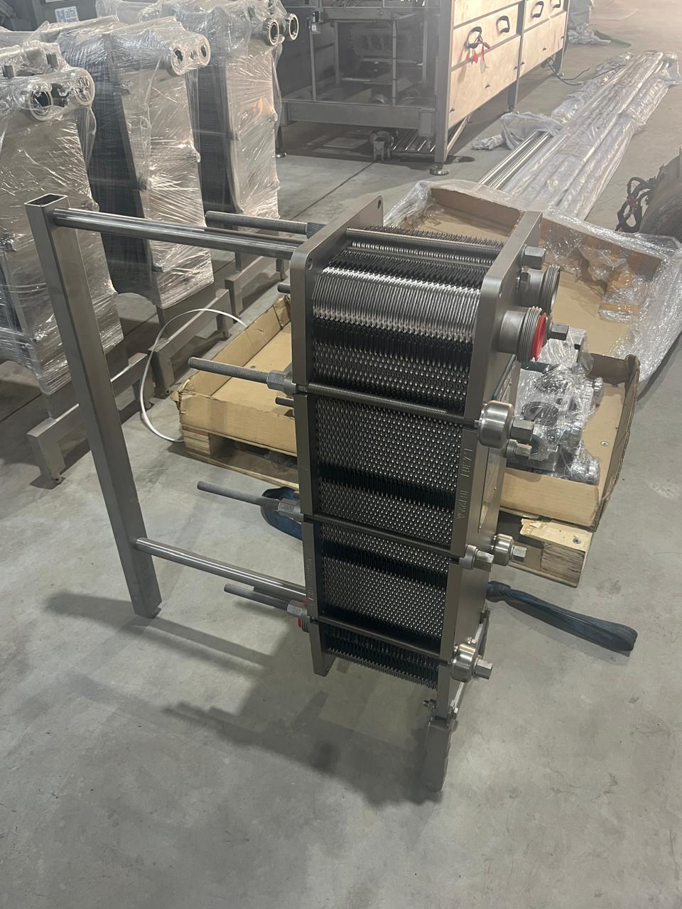 This is a Used / Pre – Owned GEA VT 40 Plate Heat Exchanger Pasteurizer with approximate capacity of 10,000–12,000 LPH. Designed for efficient heat transfer and energy recovery, operating pasteurization temperatures typically range between 72°C–85°C with holding section. Built with multi-plate PHE system (40+ plates), Made in Germany and currently held at Shrinivasa Techno Facility.