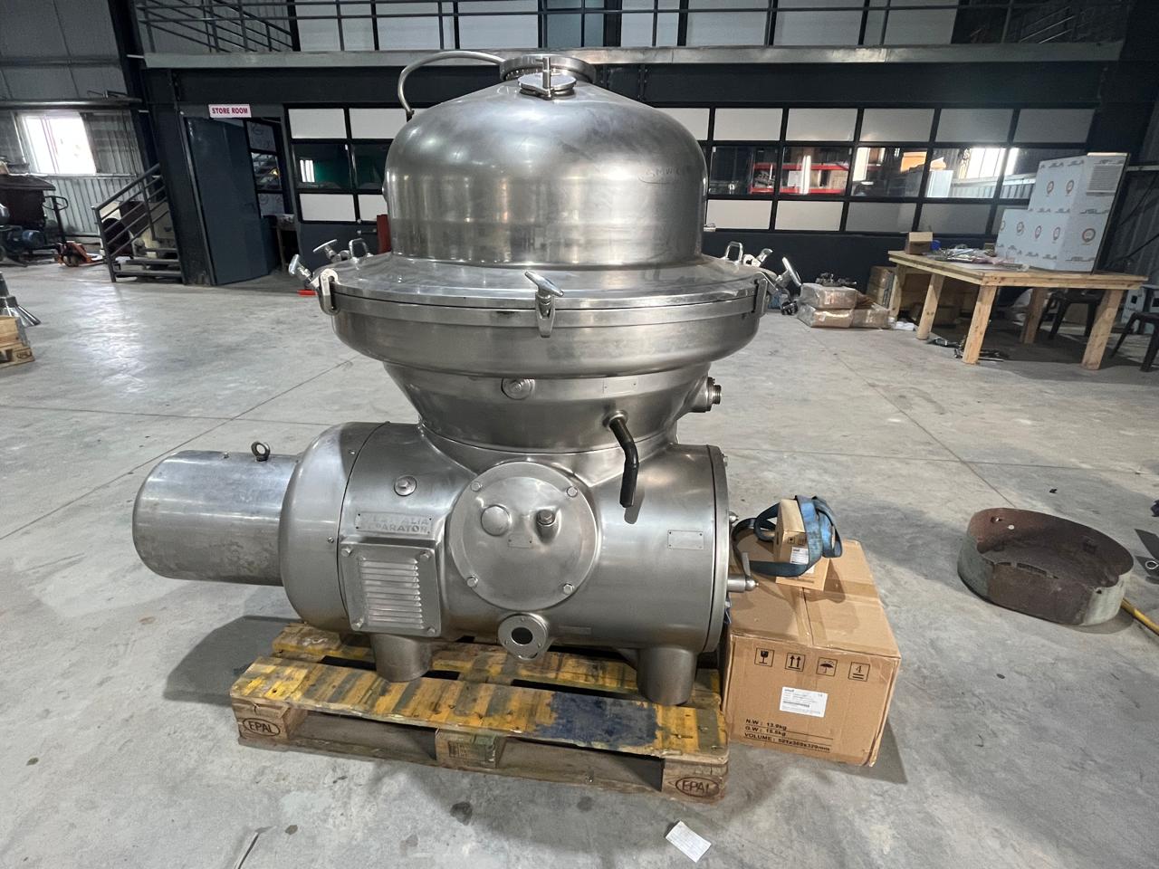 This is a Used / Pre – Owned Westfalia MSA 130 Cream Separator with 10,000 LPH capacity and Bowl Speed RPM 4500. Includes plates and bowls. Made in Germany. Currently held at Shrinivasa Techno Facility.